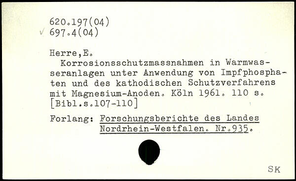 Korrosionsschutzmassnahmen in Warmwas-seranlagen unter Anwendung von Impfphosphaten und des kathodischen Schutzverfahrens mit Magnesium-Anoden