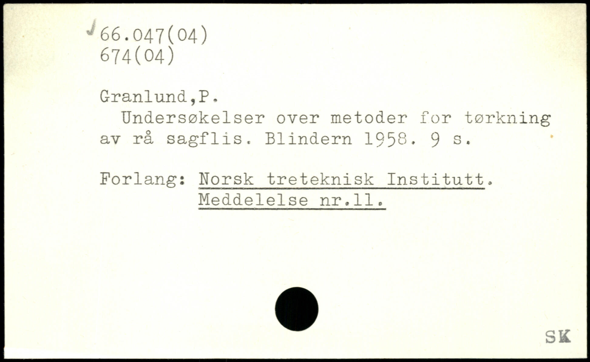 Undersøkeiser over metoder for tørkning av rå sagflis. Blindern 1958.