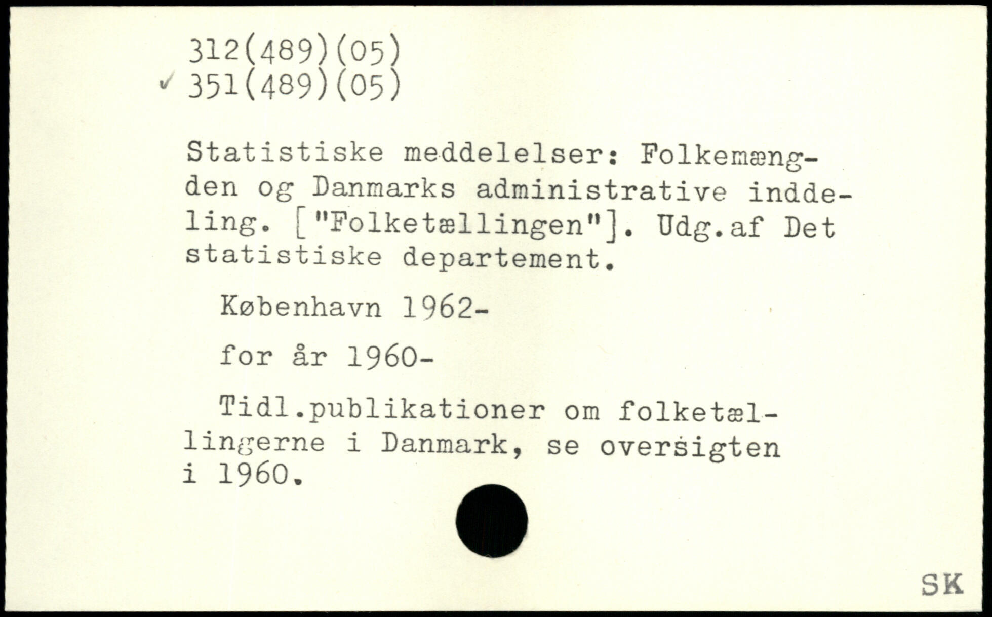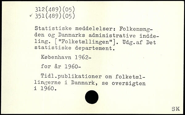 Statistiske meddelelser: Folkemængden og Danmarks administrative inddeling. ["Folketællingen"]. Udg.af Det statistiske departement.