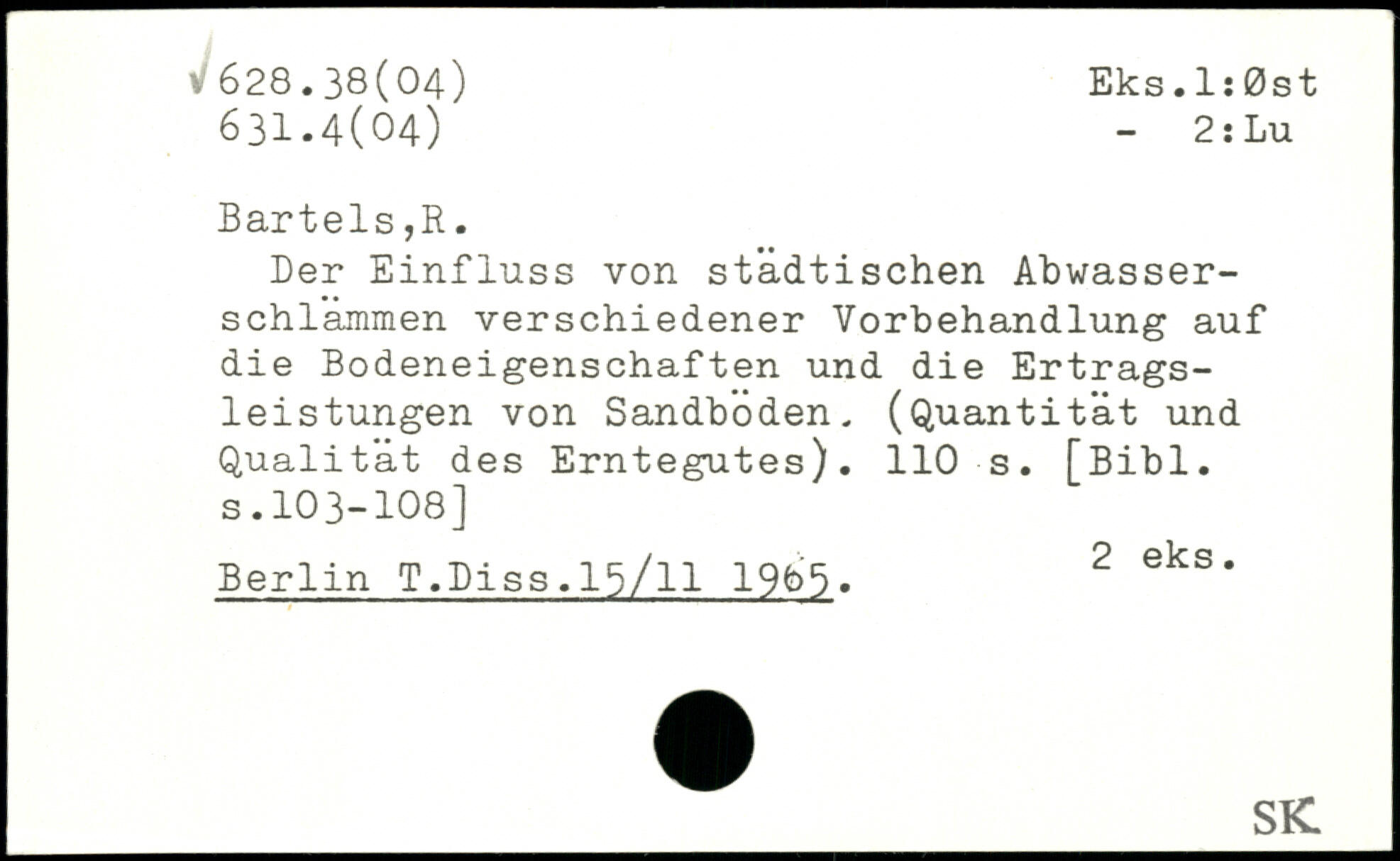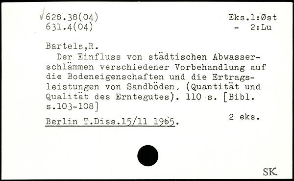 Der Einfluss von städtischen Abwasserschlammen verschiedener Vorbehandlung auf die Bodeneigenschaften und die Ertragsleistungen von Sandboden. (Quantität und Qualität des Erntegutes).