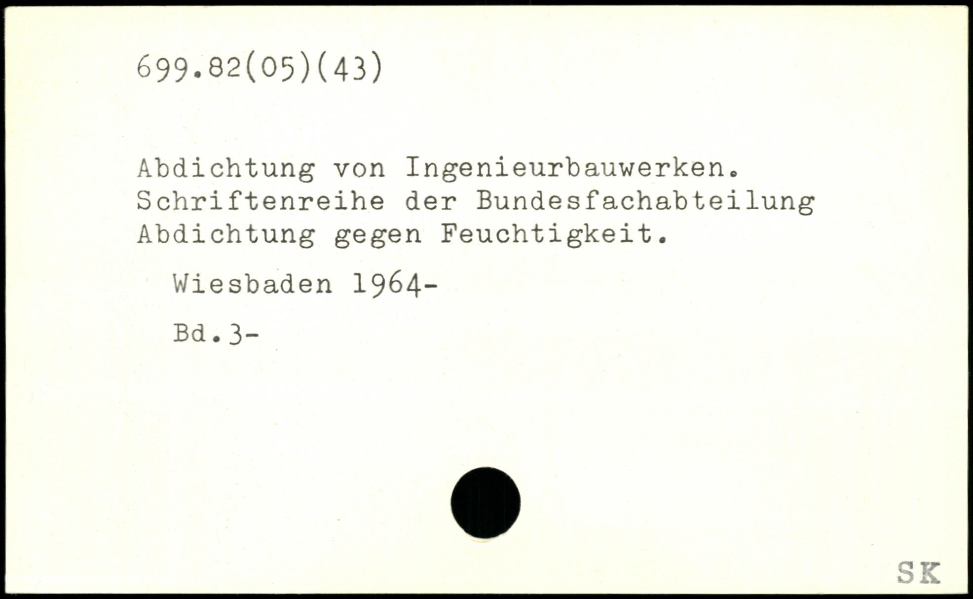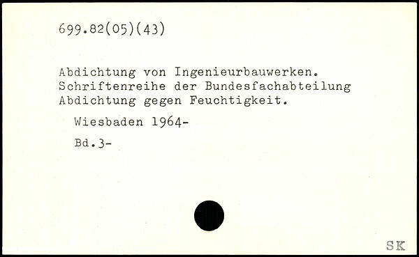 Abdichtung von Ingenieurbauwerken. Schriftenreihe der Bundesfachabteilung Abdichtung gegen Feuchtigkeit. Wiesbaden 1964- Bd. 3-