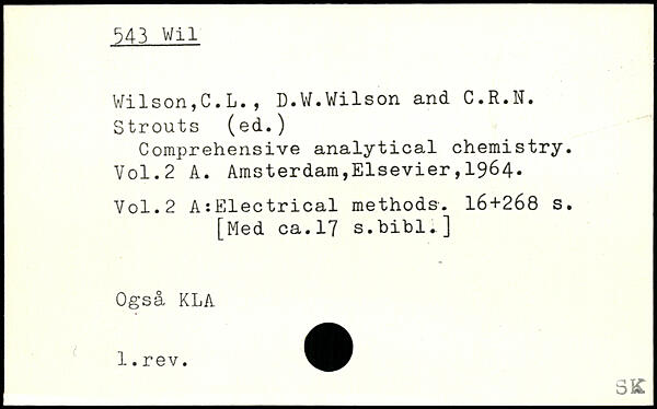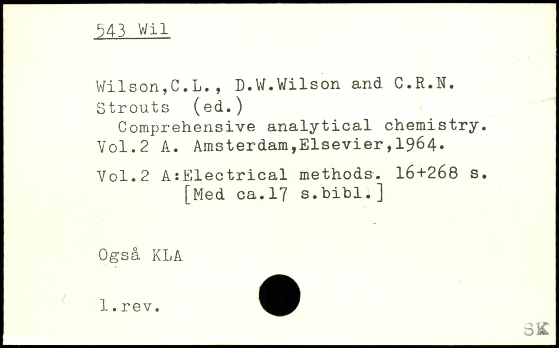 Wilson,C.L., D.W.Wilson and C.R.N. Strouts (ed.) Comprehensive analytical chemistry.