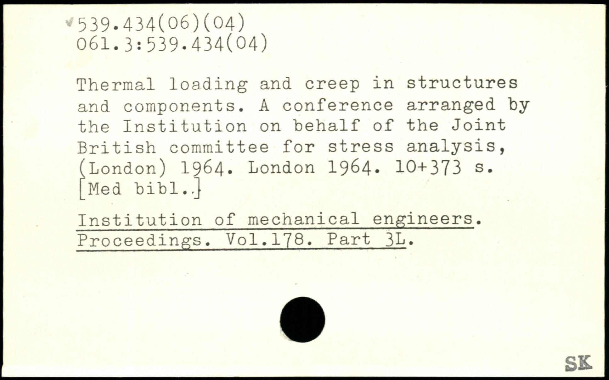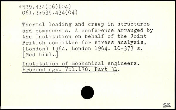 Thermal loading and creep in structures and components. A conference arranged by the Institution on behalf of the Joint British committee for stress analysis, (London) 1964.