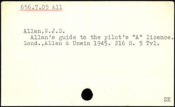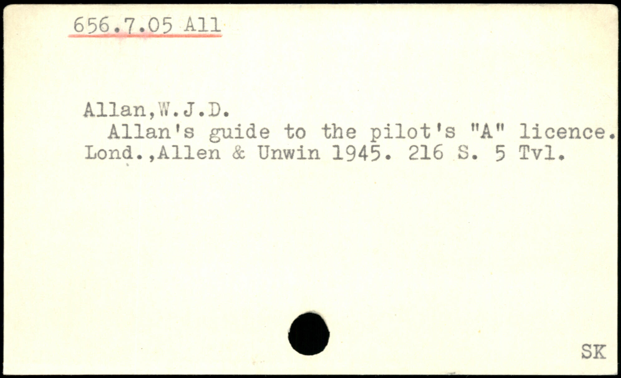 Allan’s guide to the pilot's "A" licence. Lond.,Allen & Unwin 1945.