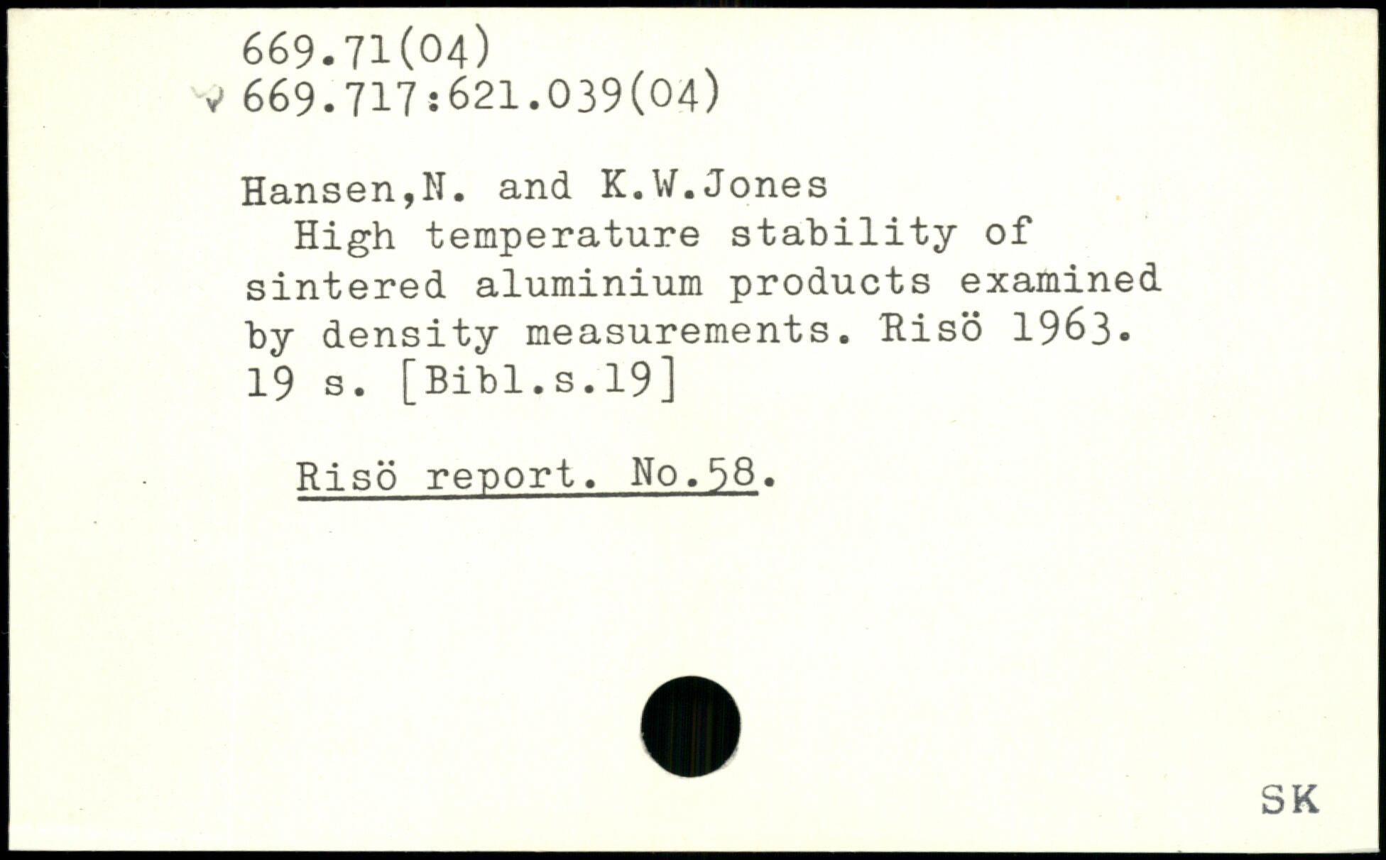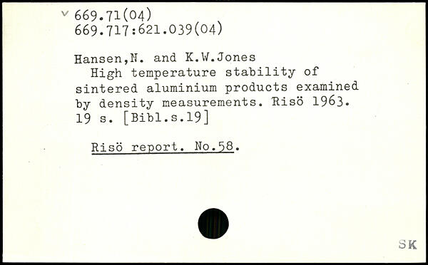 High temperature stability of sintered aluminium products examined by density measurements. Riso 1963