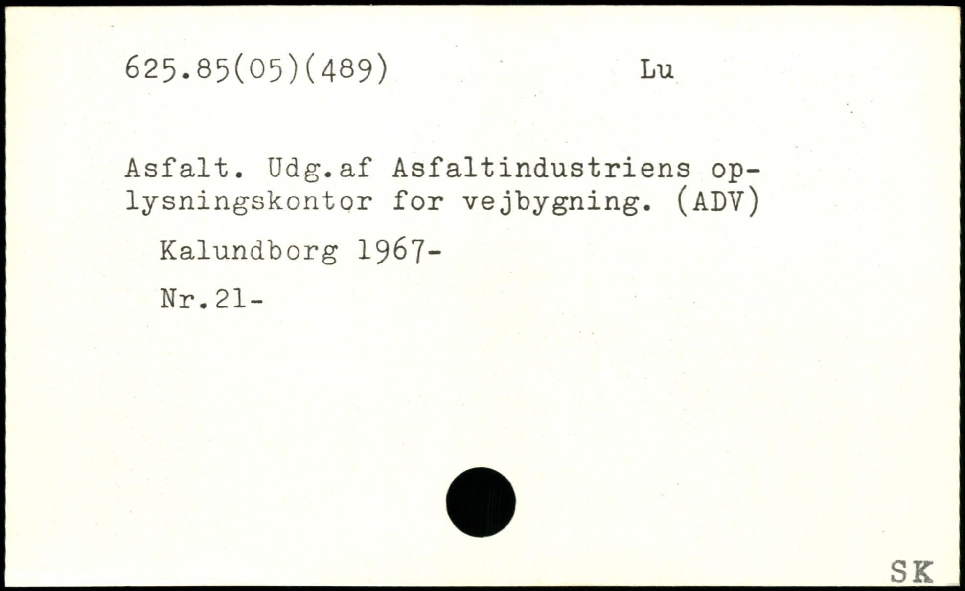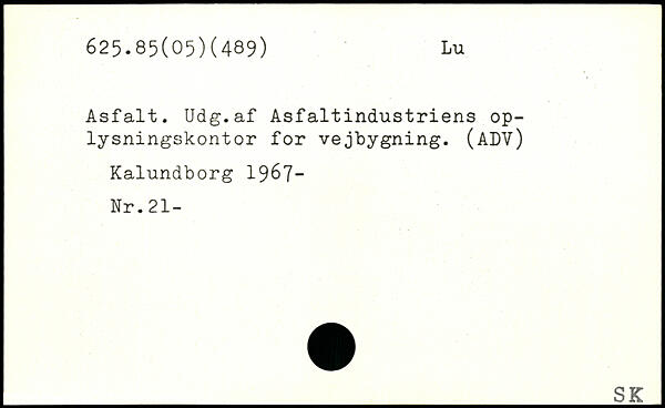 Asfalt. Udg.af Asfaltindustriens oplysningskontor for vejbygning. (ADV) Kalundborg 1967- Nr.21-