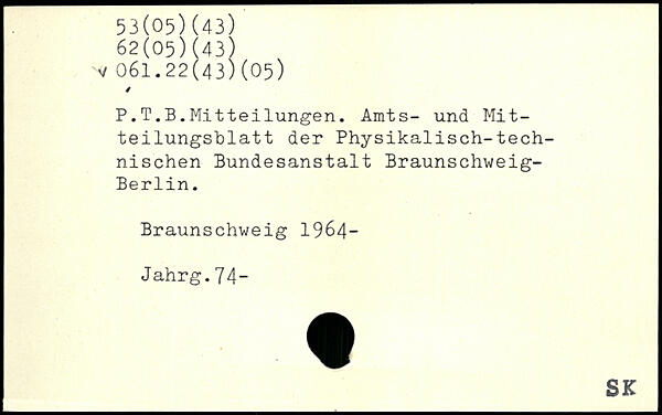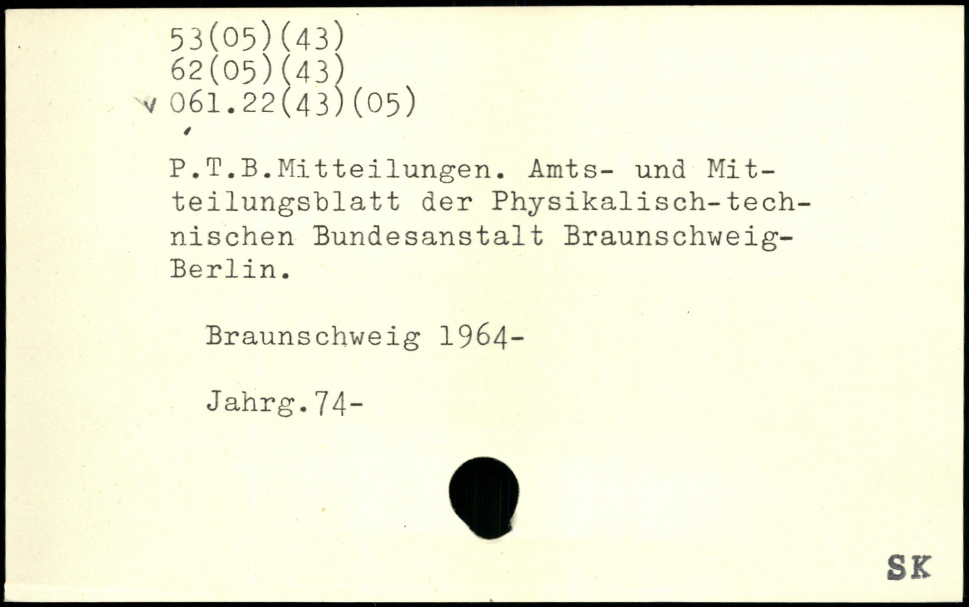 P.T.B.Mitteilungen. Amts- und Mitteilungsblatt der Physikalisch-technischen Bundesanstalt Braunschweig-Berlin. Braunschweig 1964-Jahrg.74-