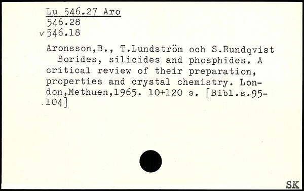 Arons son,B., T.Lundstrom och S.Rundqvist Borides, silicides and phosphides. A critical review of their preparation, properties and crystal chemistry.