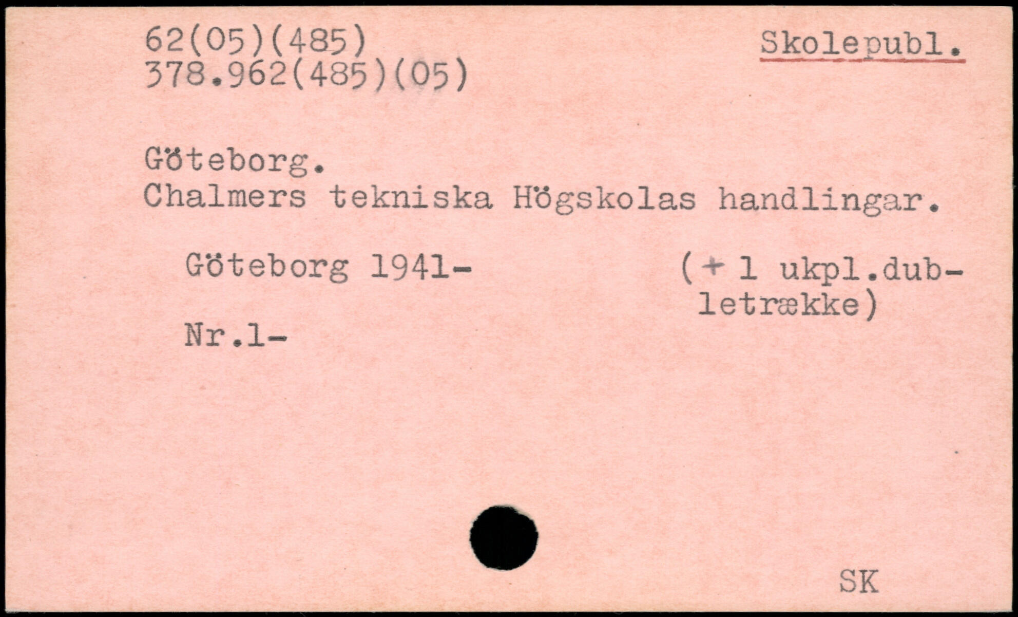 Chalmers tekniska Högskolas handlingar. Göteborg 1941- (+1 ukpl.dub- letrsekke) Nr .1-