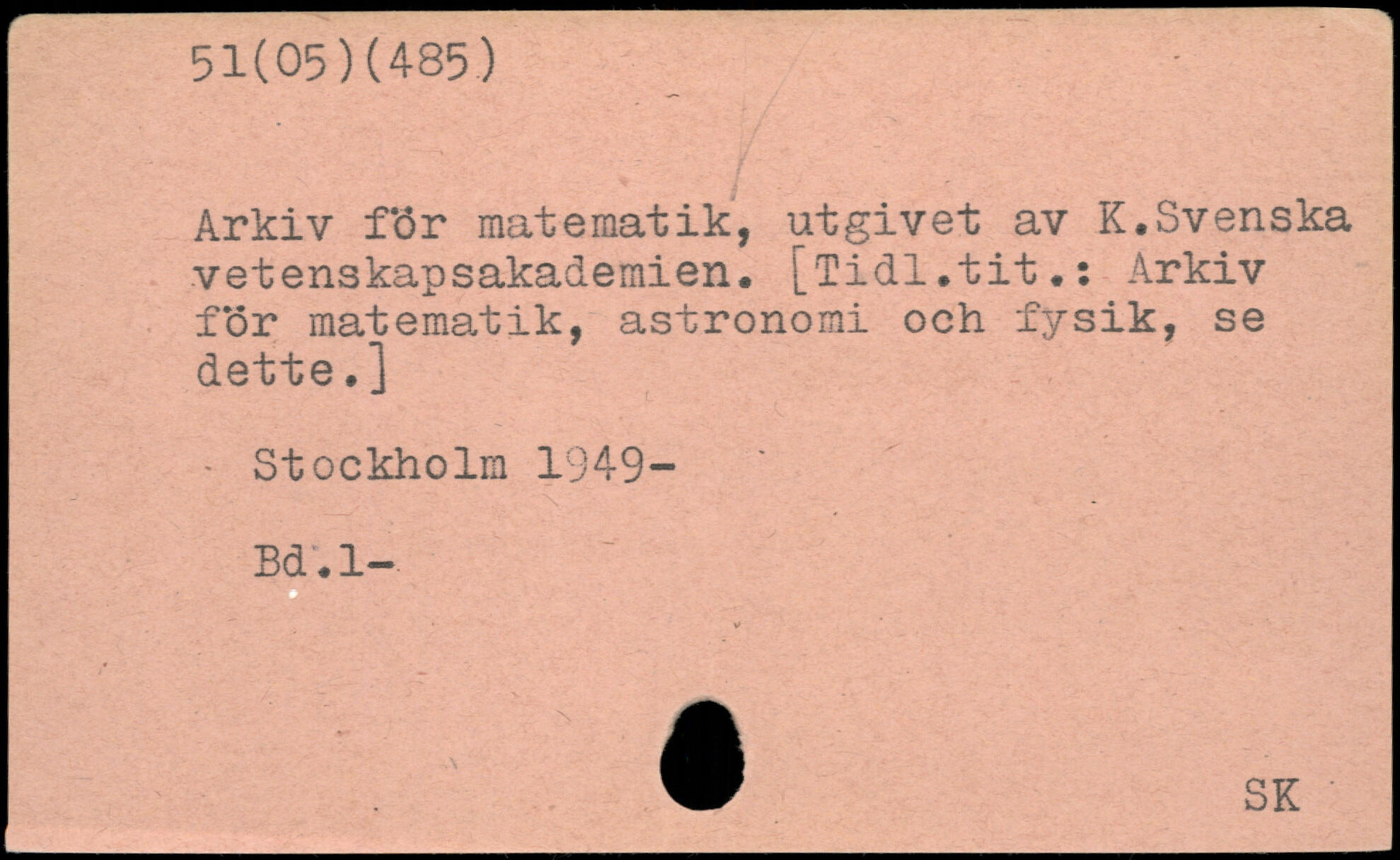 Arkiv för matematik, utgivet av K.Svenska vetenskapsakademien.