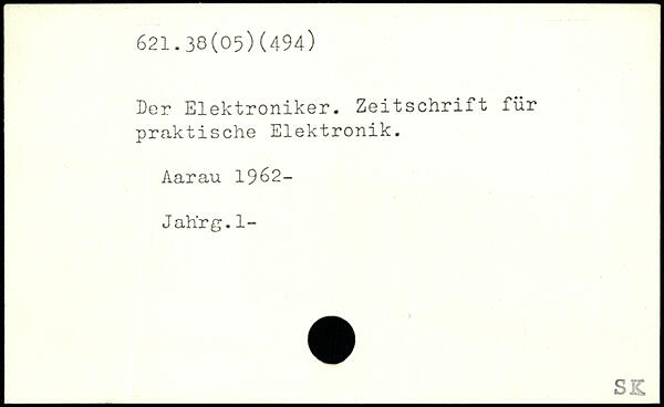Der Elektroniker. Zeitschrift für praktische Elektronik. Aarau 1962- Jah'rg. 1-