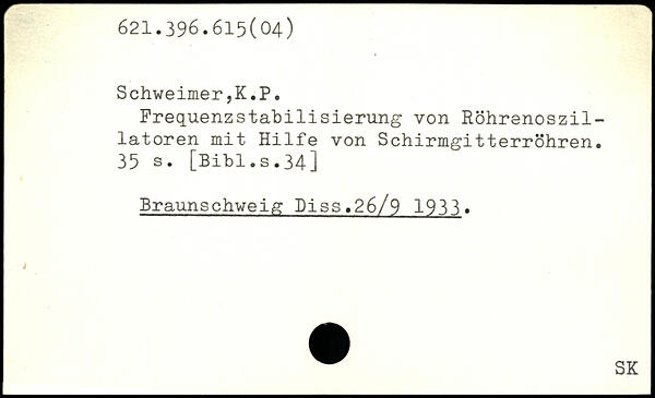 Frequenzstabilisierung von Röhrenoszillatoren mit Hilfe von Schirmgitterröhren.