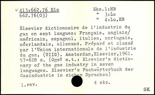 Elsevier dictionnaire de l'industrie du gaz en sept langues: Français, anglais/ américain, espagnol, italien, portugais, néerlandais, allemand. Prepare et classe par l'Union internationale de l'industrie du gaz, (UIIG).