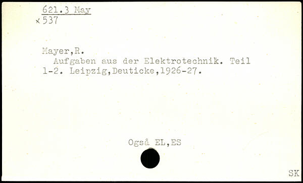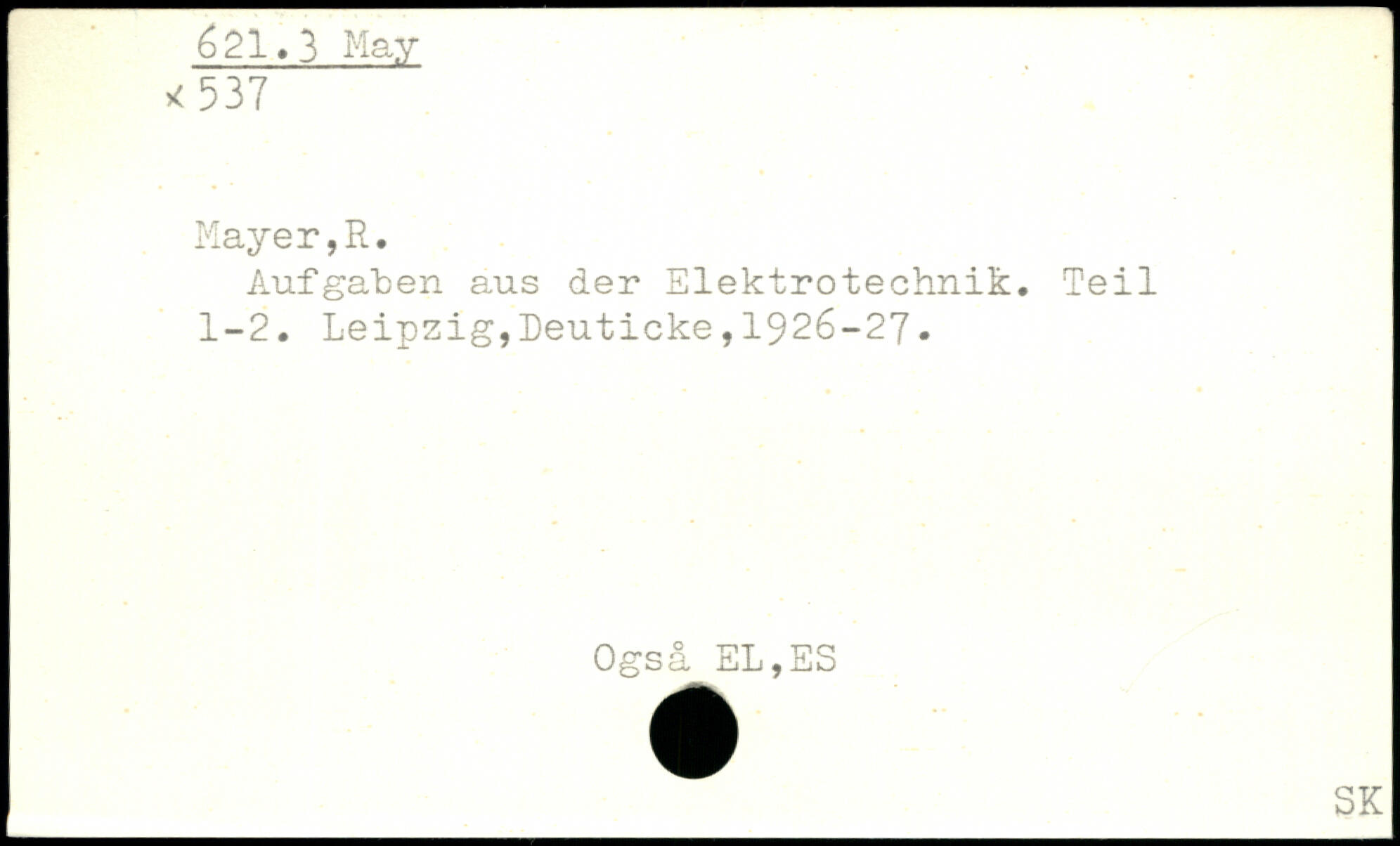 Aufgaben aus der Elektrotechnik. Teil 1-2. Leipzig,heuticke,1926-27. Ogsa EL,ES