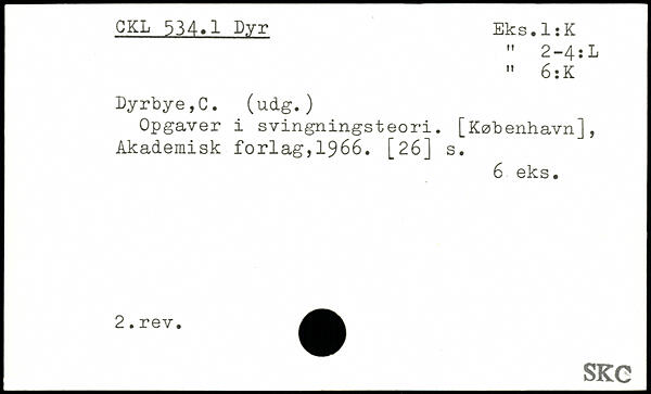 Opgaver i svingningsteori. [København], Akademisk forlag,1966. [26] s.