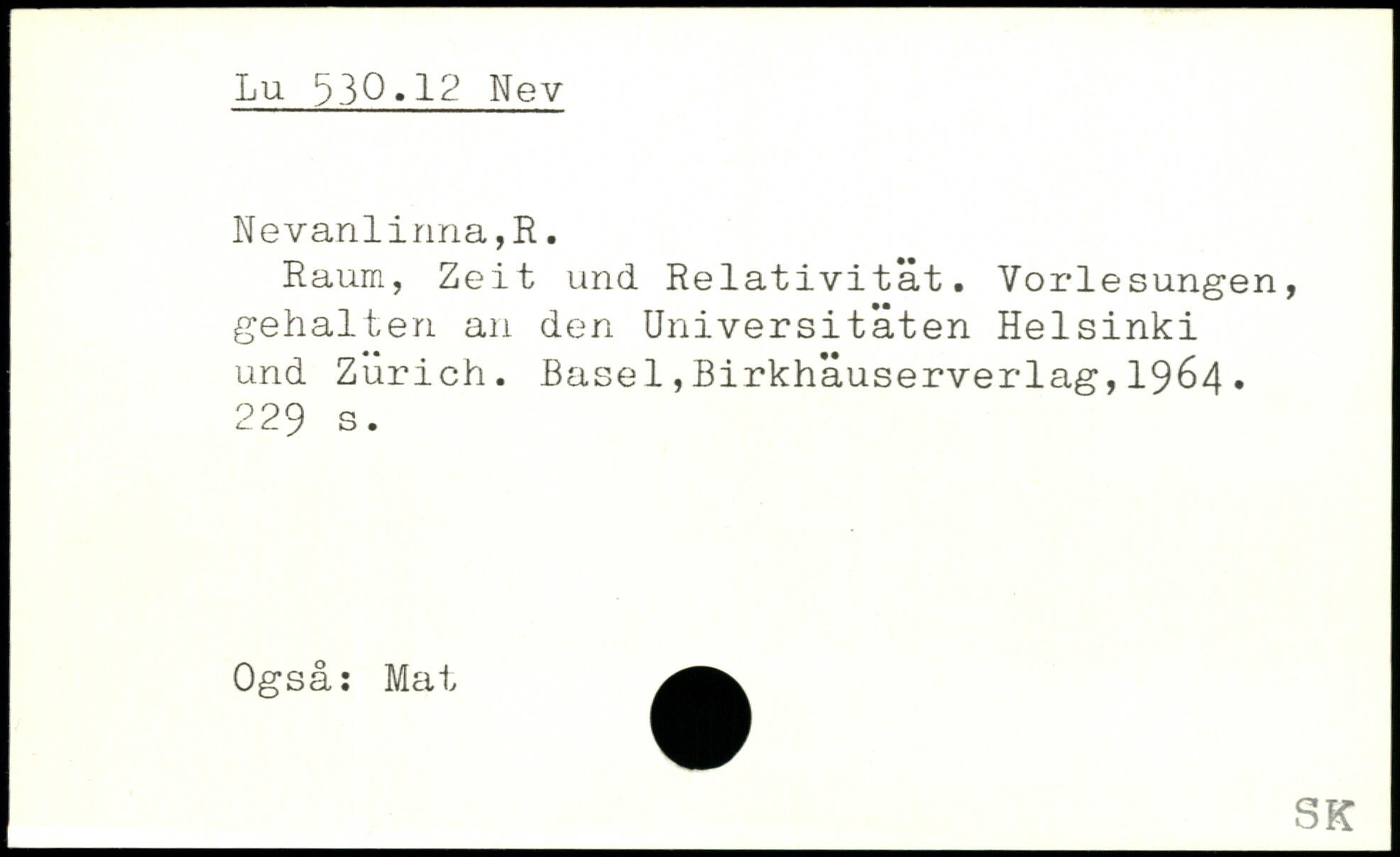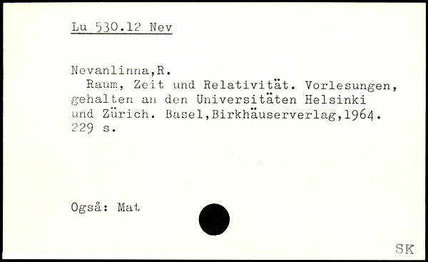 Raum, Zeit und Relativität. Vorlesungen, gehalten an den Universitäten Helsinki und Zürich.