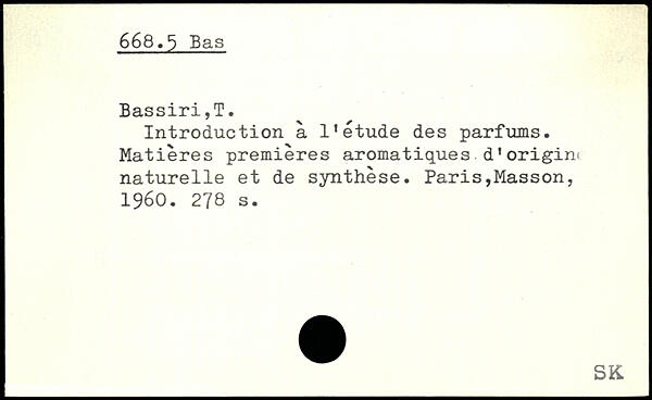 Introduction a l’étude des parfums. Matières premières aromatiques d'origim naturelle et de synthèse.