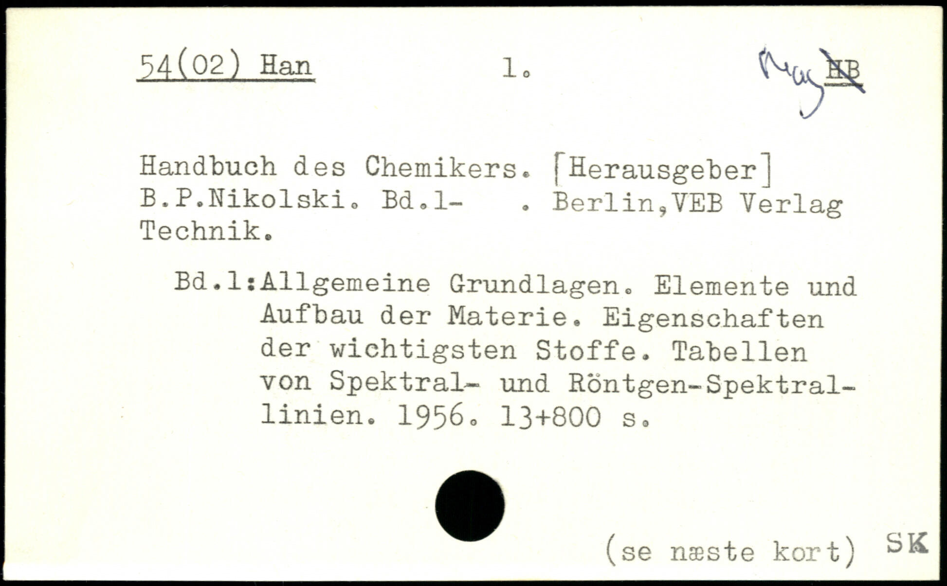 Handbuch des Chemikers. [Herausgeber] B.P.Nikolskio Bd.l-. Berlin,VEB Verlag Technik.