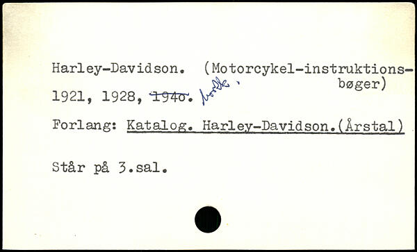 Harley-Davidson. (Motorcykel-instruktions- v ^ ' bøger) 1921, 1928, W4TT. V5 Forlang: Katalog. Harley-Davidson.(Årstal) Står på 3.sal.