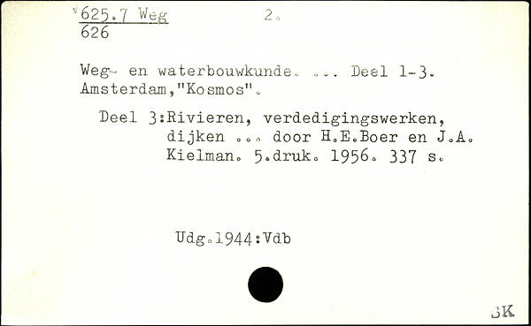 Weg- en waterbouwkunde. . Deel 1-3- Amsterdam,"Kosmos", Deel 3-Rivieren, verdedigingswerken, dijken <, , o door H,E0Boer en J0A0 Kleiman, 5,drukQ 1956.