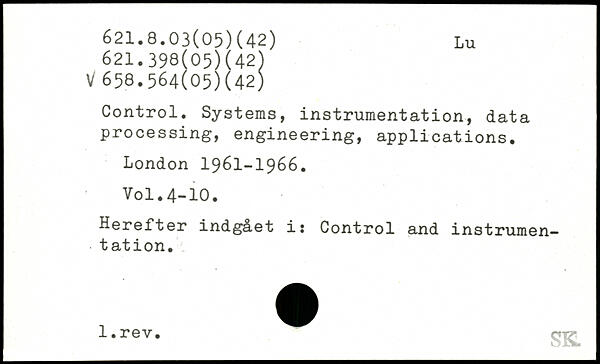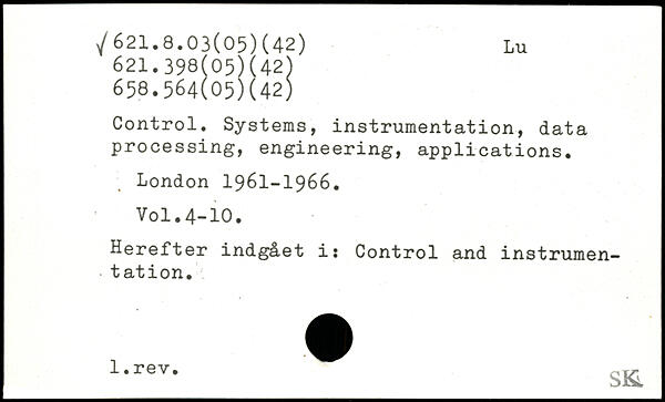 Control. Systems, instrumentation, data processing, engineering, applications.