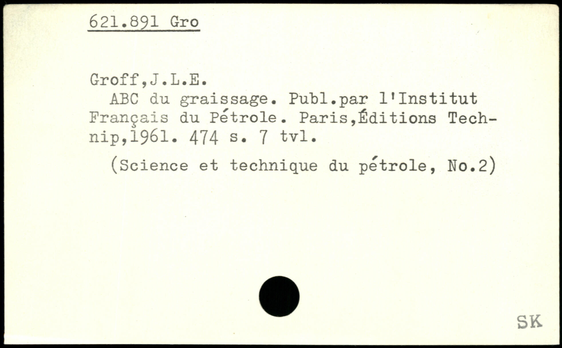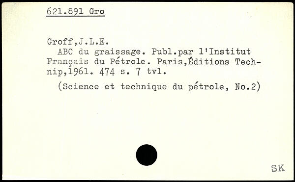 ABC du graissage. Publ.par l’Institut Français du pétrole. Paris,Éditions Tech-nip,1961.
