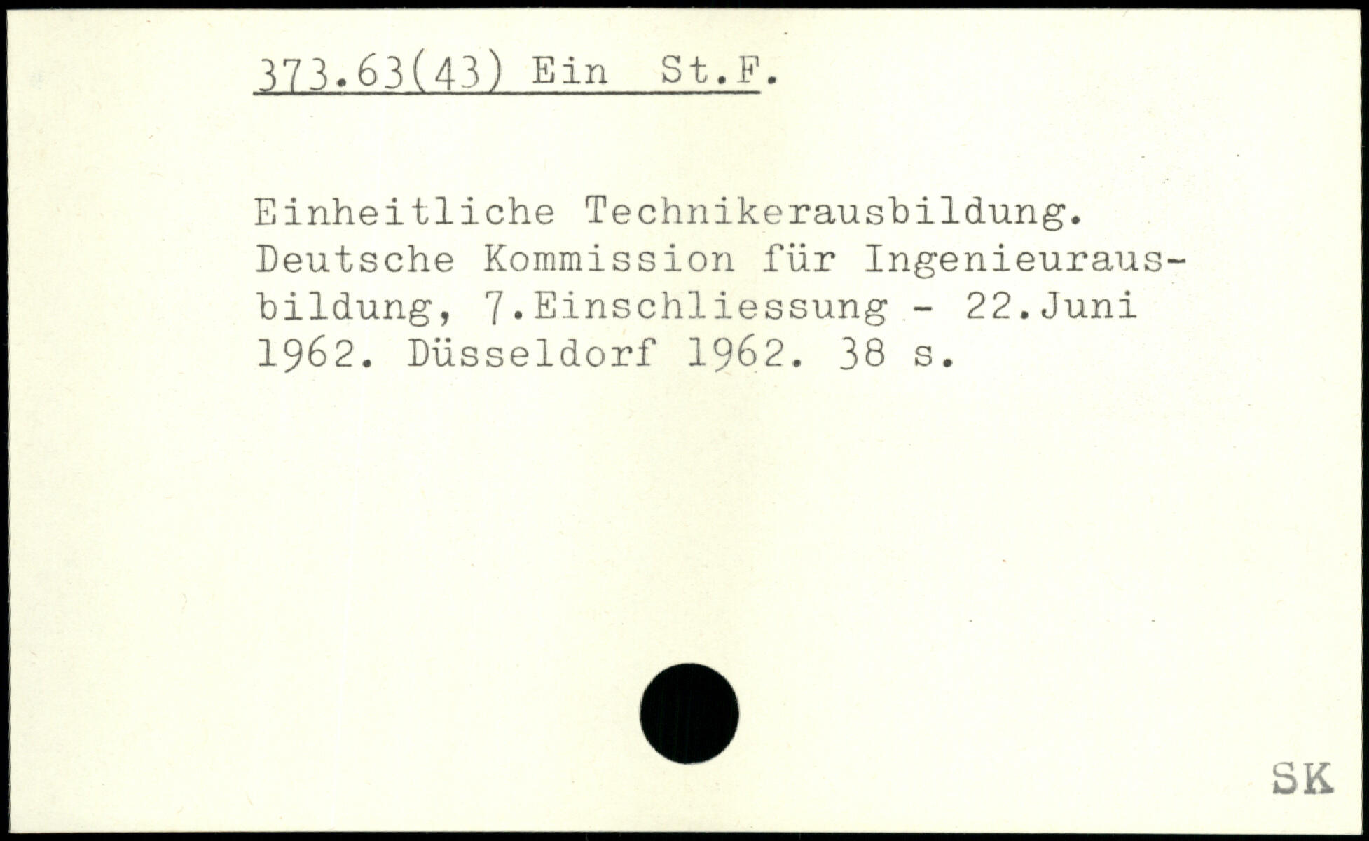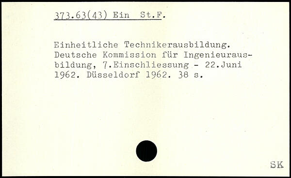Einheitliche Technikerausbildung. Deutsche Kommission für Ingenieurausbildung, 7.Einschliessung - 22.Juni 1962. Düsseldorf 1962.