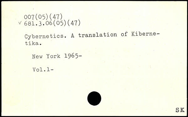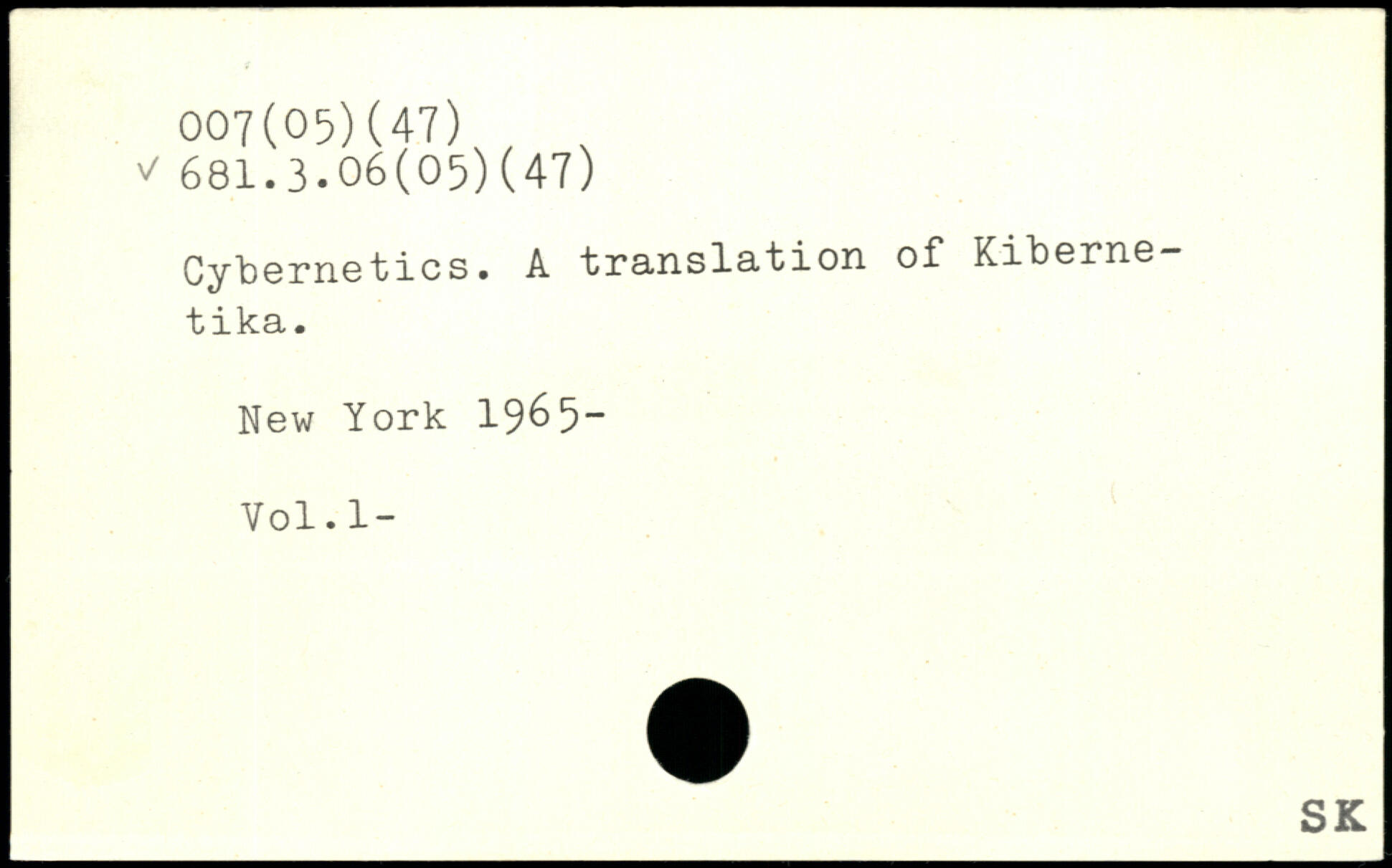 Cybernetics. A translation of Kiberne-tika. New York 19&5“ Vol.l-