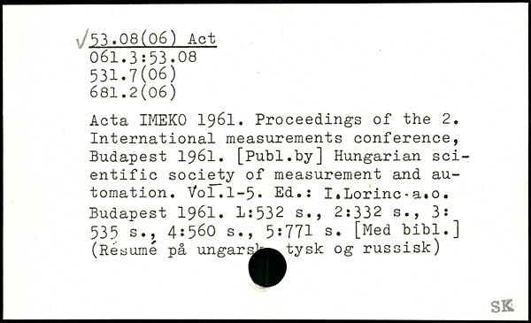 Acta IMEKO 1961. Proceedings of the 2. International measurements conference