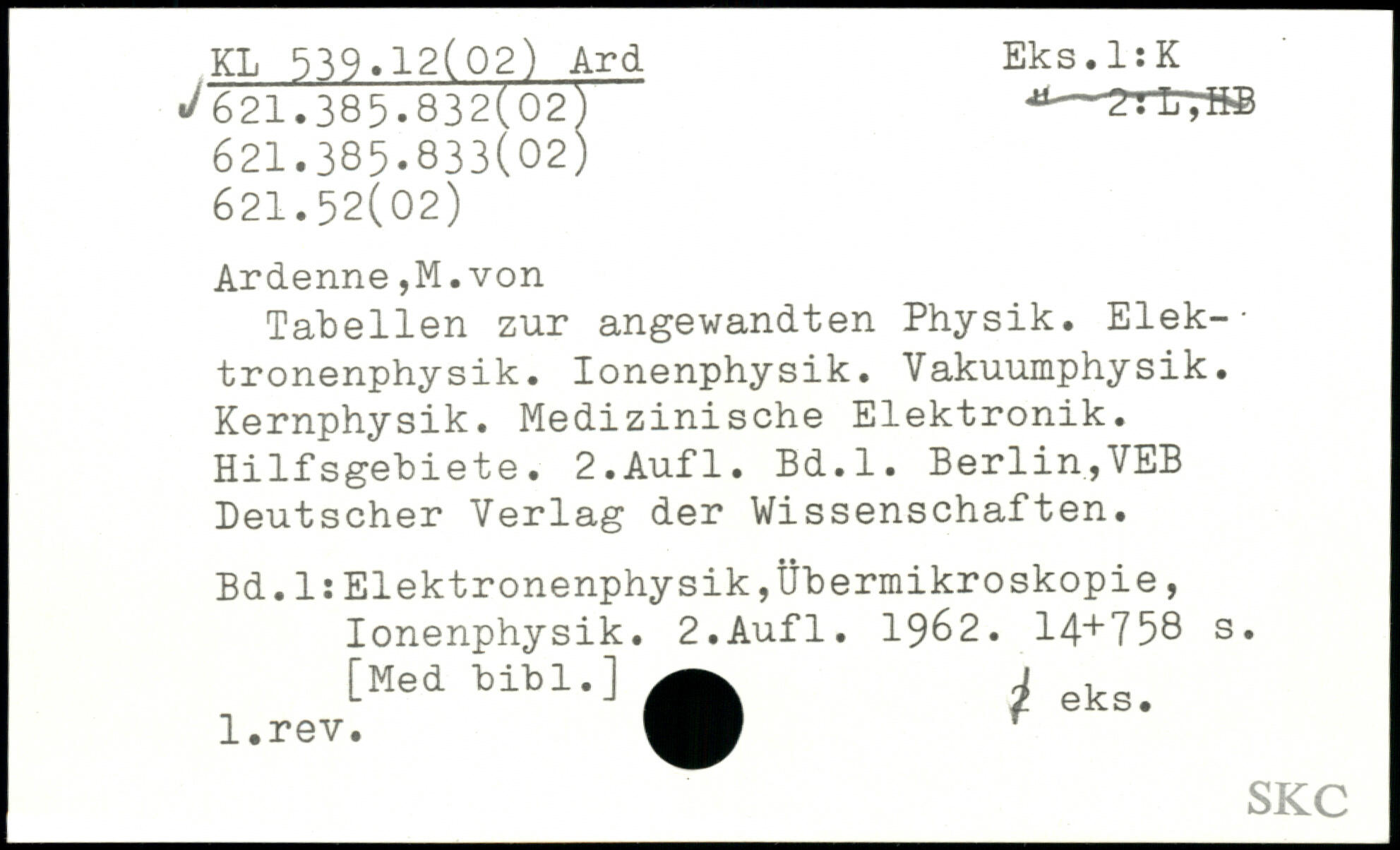 Tabellen zur angewandten Physik. Elek-. tronenphysik. Ionenphysik. Vakuumphysik. Kernphysik. Medizinische Elektronik. Hilfsgebiete.