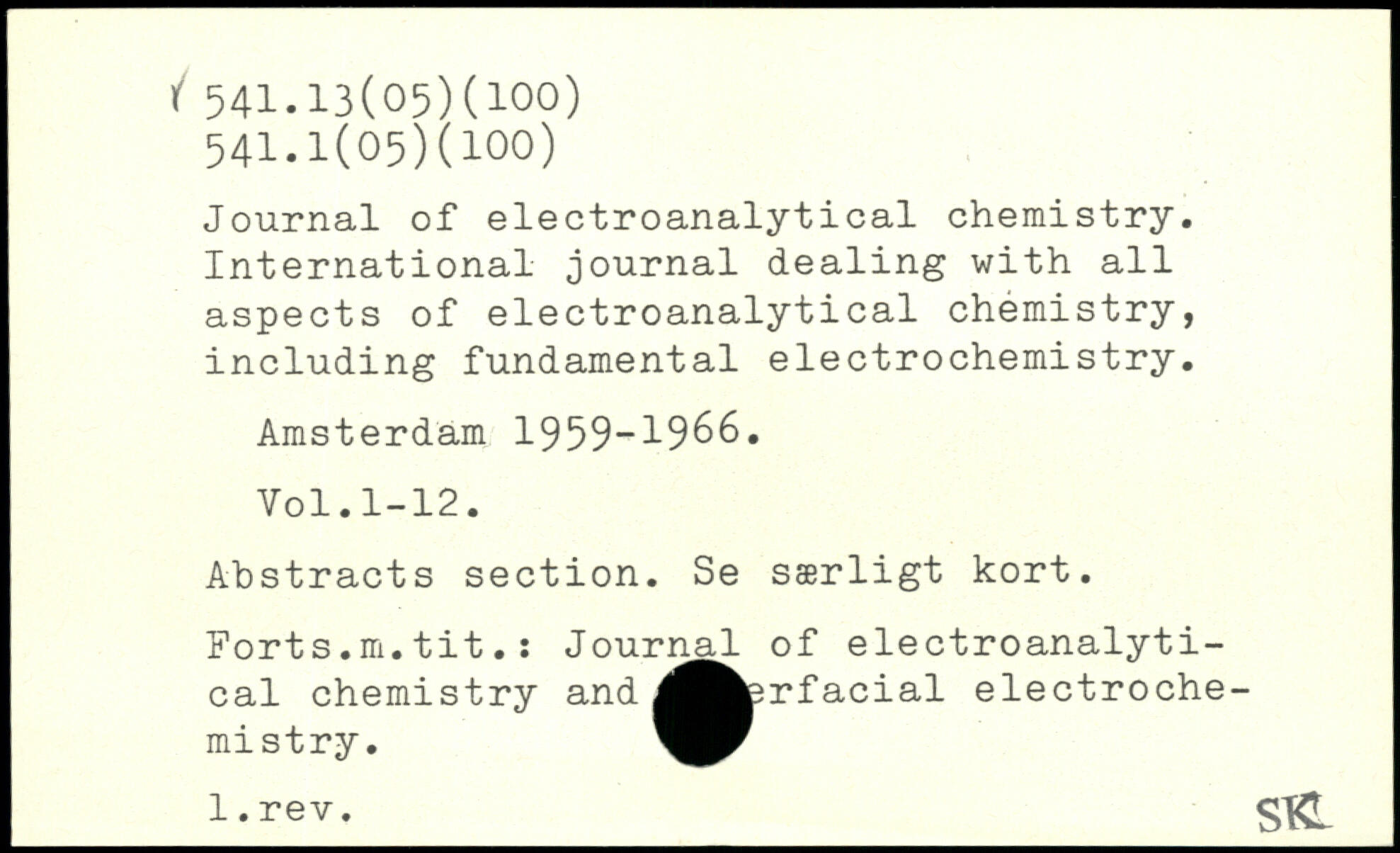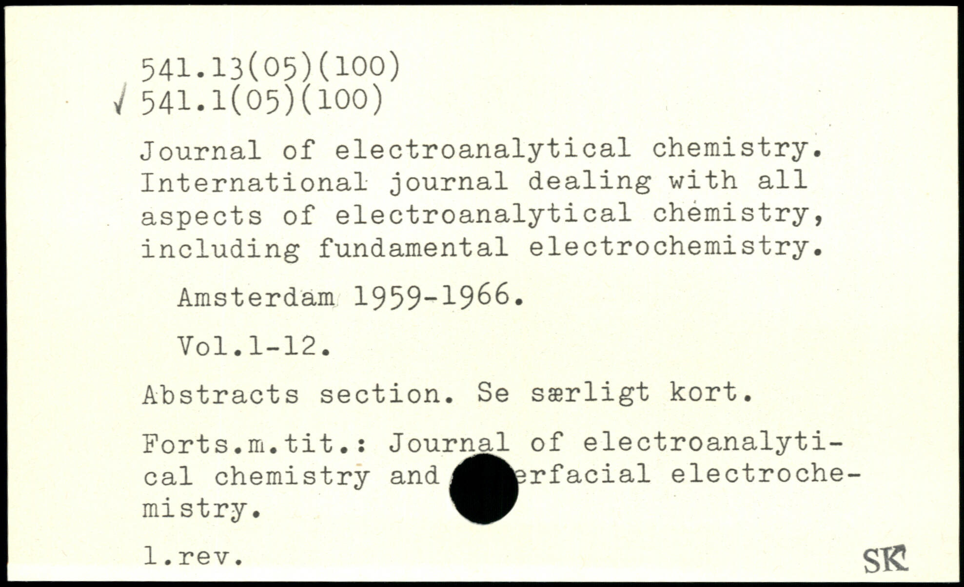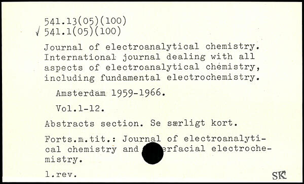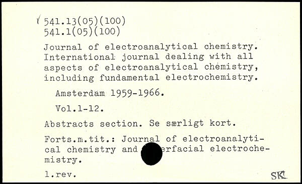 Journal of electroanalytical chemistry. International journal dealing with all aspects of electroanalytical chemistry, including fundamental electrochemistry. Amsterdam 1959-1966.
