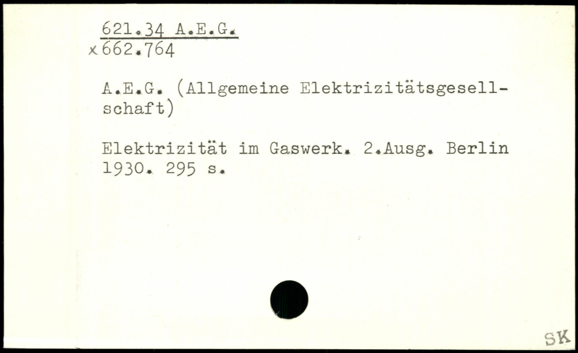 A.E.G. (Allgemeine Elektrizitätsgesellschaft) Elektrizität im Gaswerk. 2.Ausg.