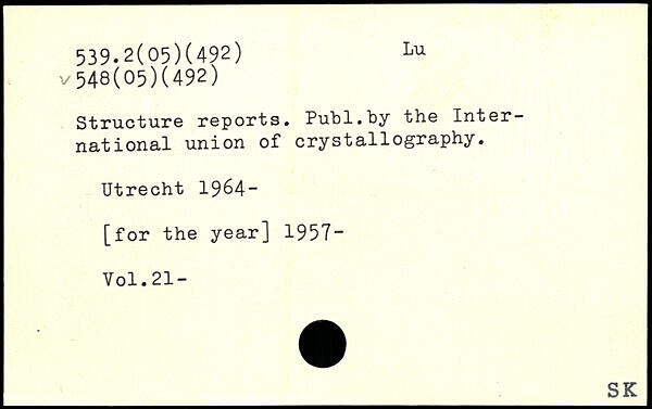Structure reports. Pulal.by the International union of crystallography. Utrecht 1964-