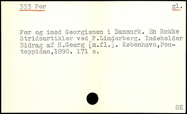 Por og imod Georgismen i Danmark. En Række Stridsartikler vedJF.Linderberg. Indeholder Bidrag af H.Georg [m.fl.].