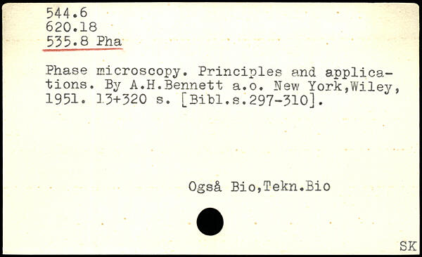 Phase microscopy. Principles and applications. By A.H.Bennett a.o.