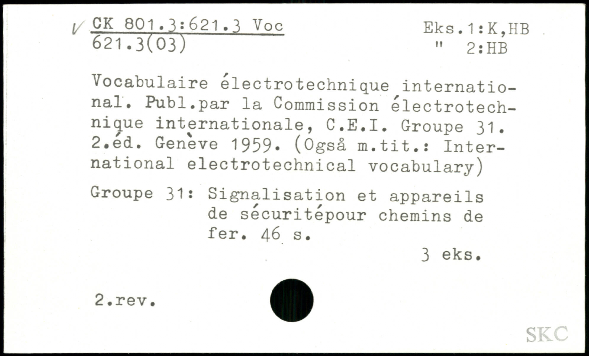 Vocabulaire électrotechnique international. Publ.par la Commission électrotechnique internationale, C.E.I. Groupe 31.