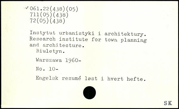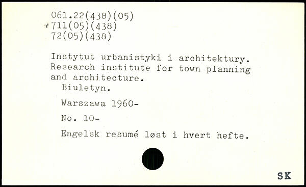Instytut urbanistyki i architektury. Research institute for town planning and architecture. Biuletyn.