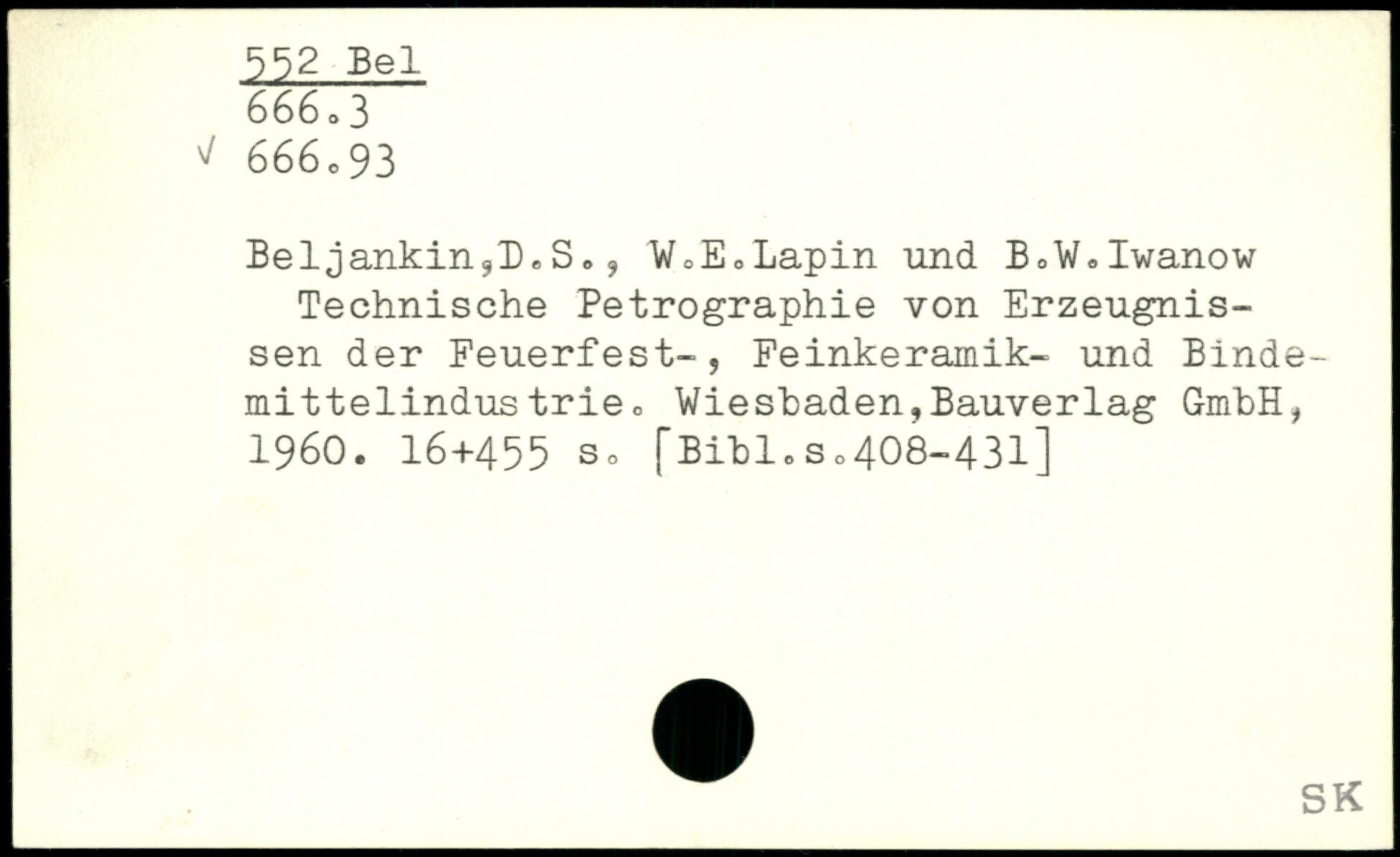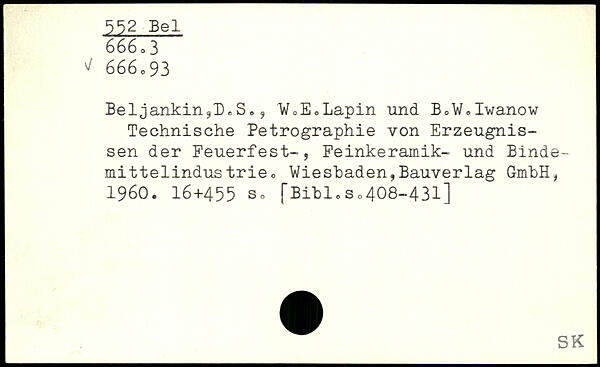 Beljankin9DeS0 ? WoEoLapin und BoWdwanow Technische Petrographie von Erzeugnissen der Feuerfest-, Feinkeramik- und