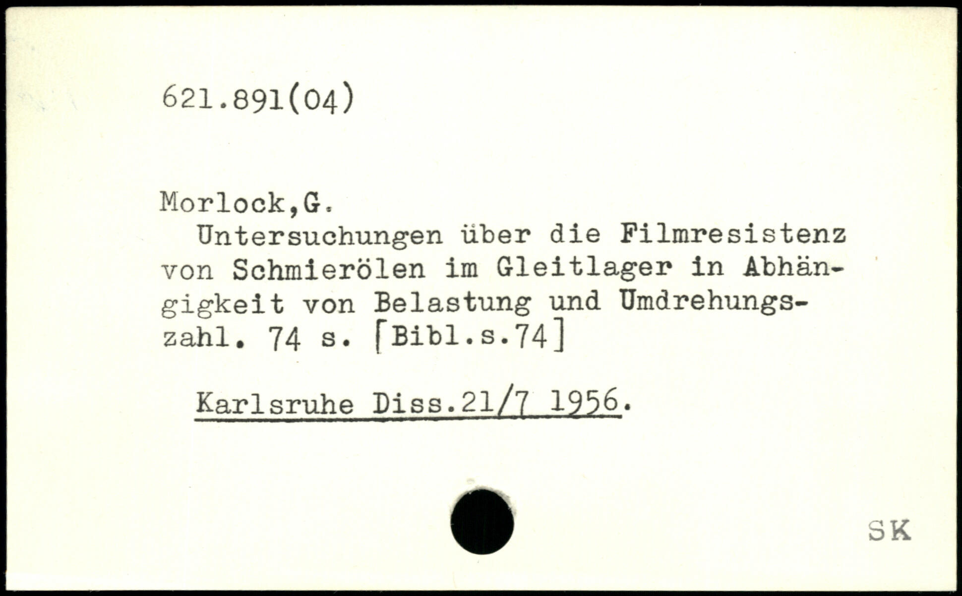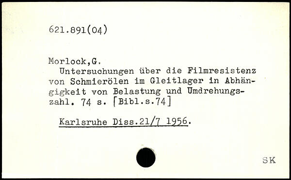 Untersuchungen über die Filmresistenz von Schmierölen im Gleitlager in Abhängigkeit von Belastung und Umdrehungszahl.