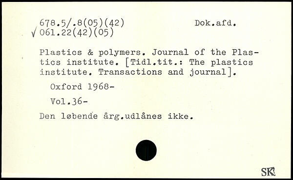 Plastics & polymers. Journal of the Plastics institute. [Tidl.tit.î The plastics institute. Transactions and journal].