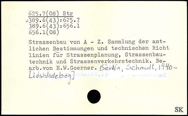 Strassenbau von A - Z. Sammlung der amtlichen Bestimmungen und technischen Rieht linien für Strassenplanung, Strassenbau-technik und Strassenverkehrstechnik. Be-arb.von E.W.Goerner. U,\H%~ LL6£,blacltbo.i~]
