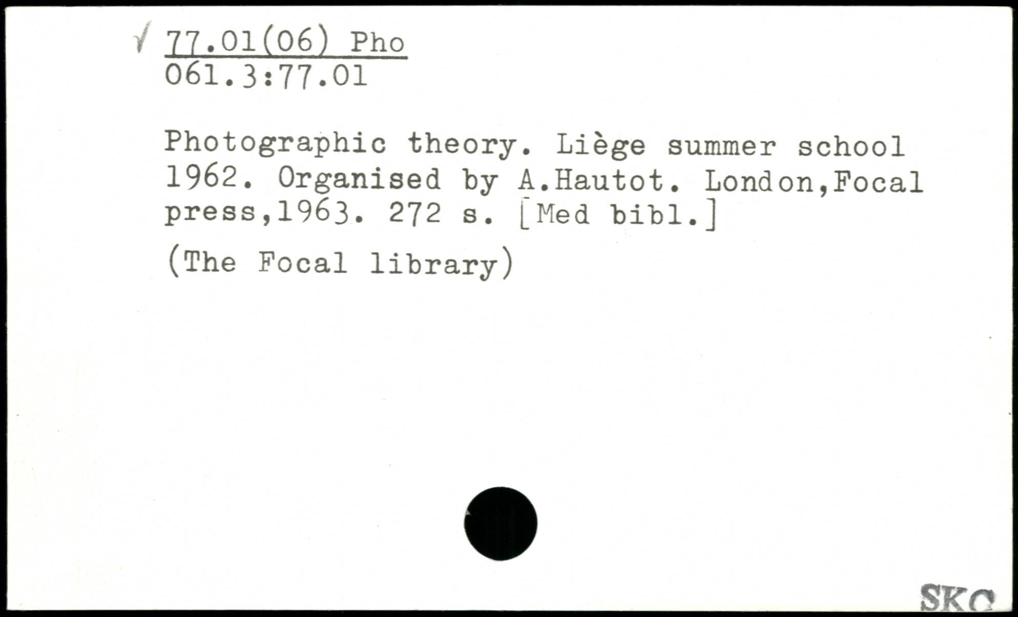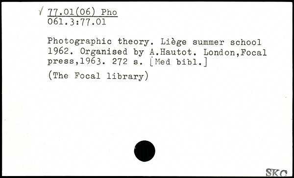Photographic theory. Liège summer school 1962. Organised hy A.Hautot.