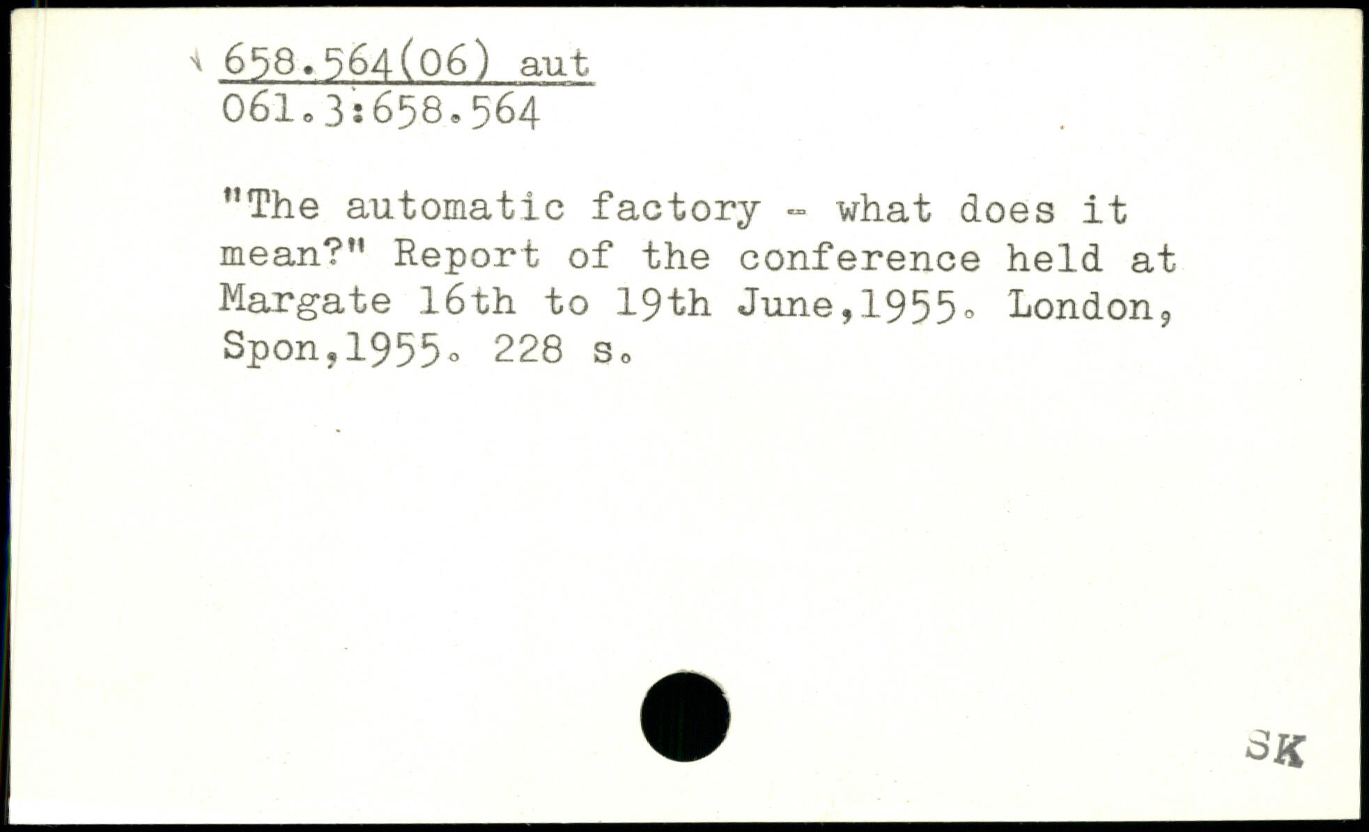 ”The automatic factory - what does it mean?” Report of the conference held at Margate 16th to 19th June,1955
