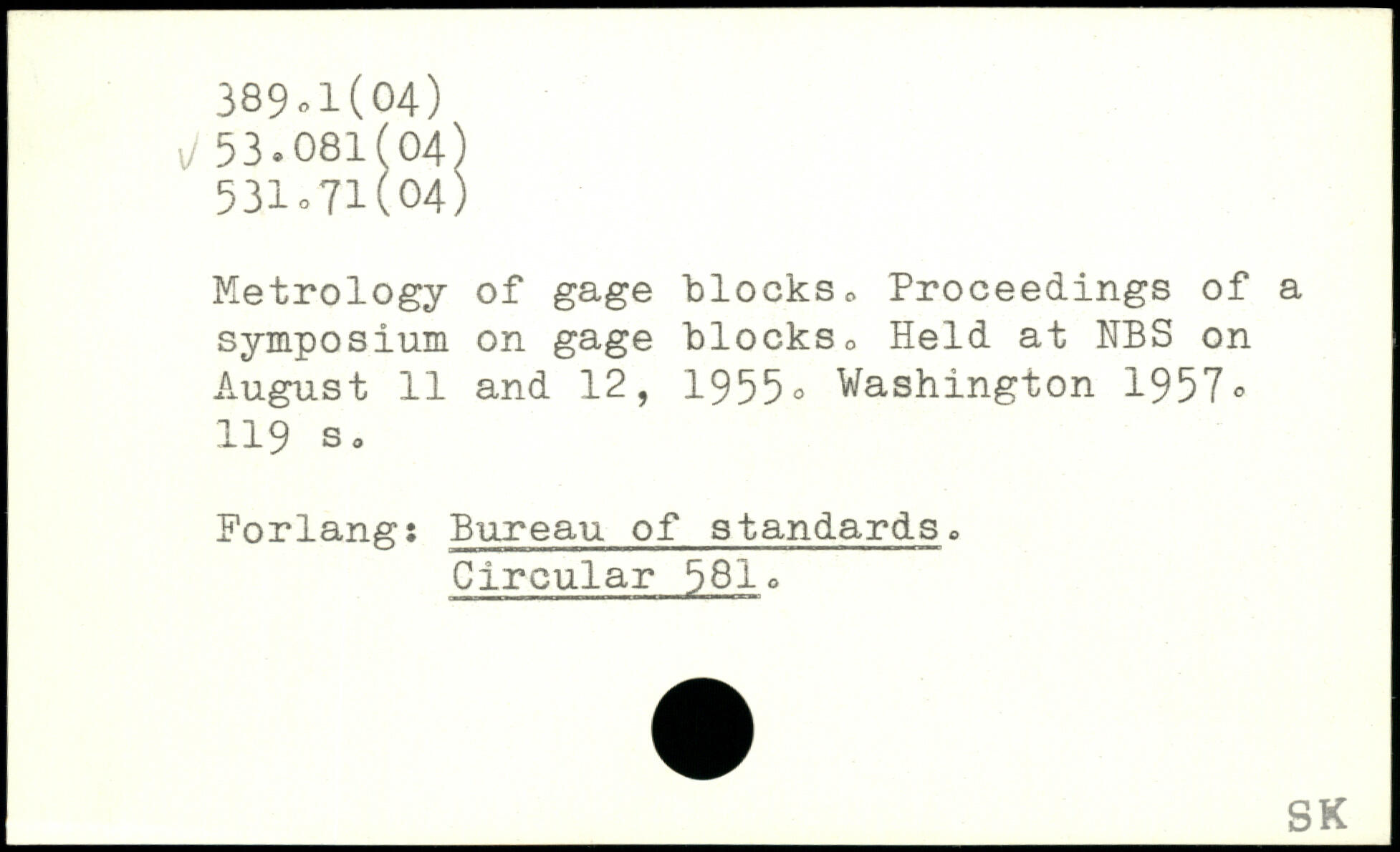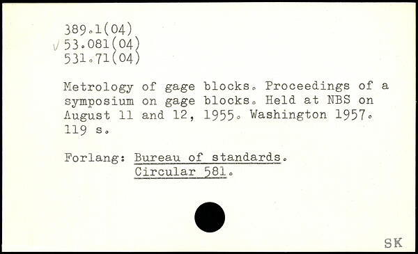 Metrology of gage blocks, Proceedings of a symposium on gage blocks. Held at NBS on August 11 and 12, 1955.