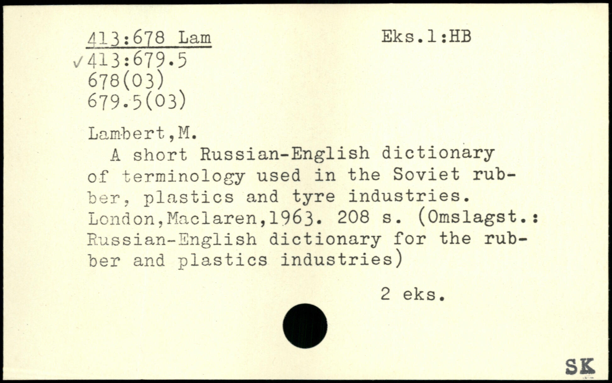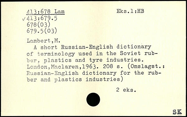 A short Russian-English dictionary of terminology used in the Soviet rubber. plastics and tyre industries.