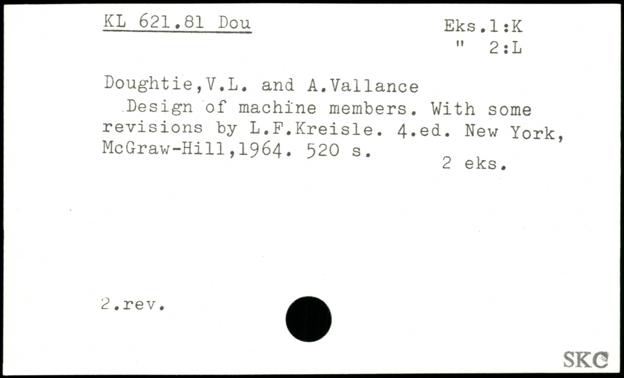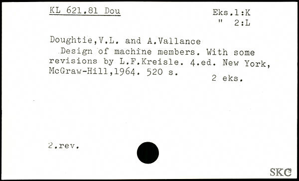 Doughtie,V.L, and A.Vallance Design of machine members. With some revisions by L.F.Kreisle.