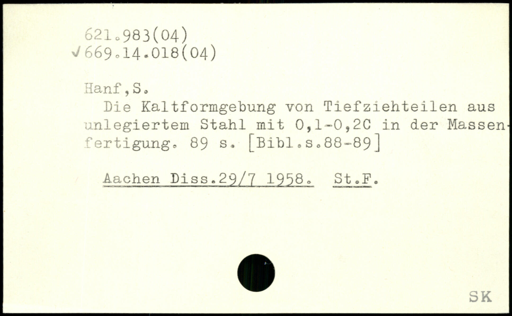 Die Kaltformgebung von Tiefziehteilen aus unlegiertem Stahl mit 0,1-0,20 in der Massen' fertigung.