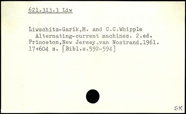 Liwschitz~Garik?M0 and C,C o'Whipple Alternating-current machines