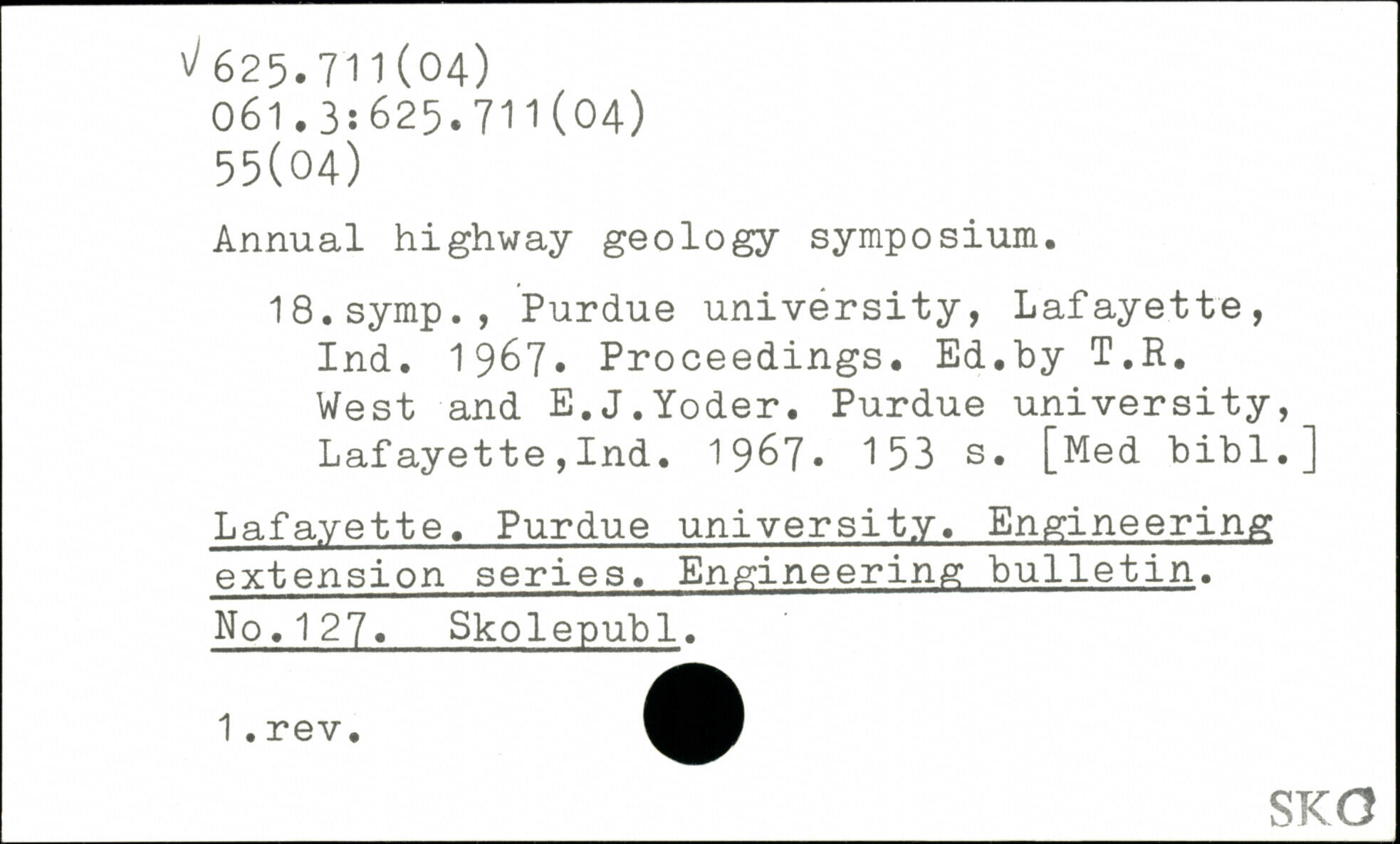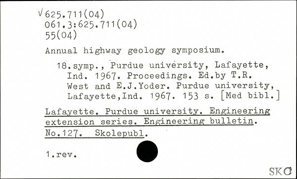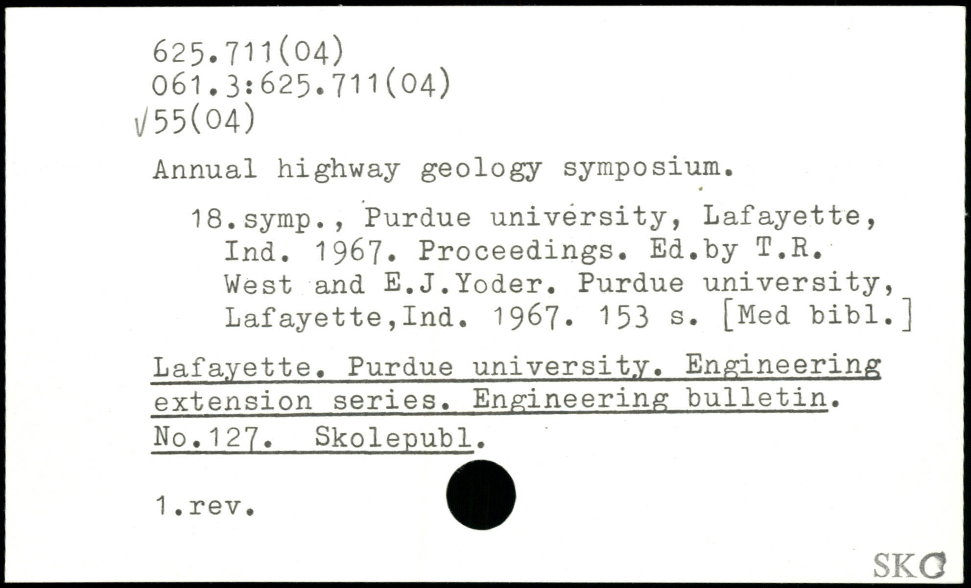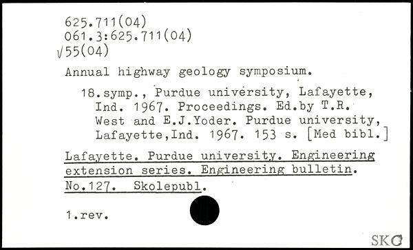 Annual highway geology symposium. 18.symp., Purdue university, Lafayette, Ind. 1967. Proceedings. Ed.by T.R. West and E.J.Yoder. Purdue university, Lafayette,Ind. 19^7-