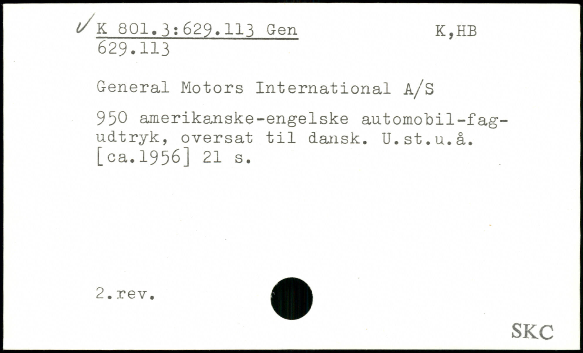 General Motors International a/S 950 amerikanske-engelske automobil-fagudtryk, oversat til dansk. U.st.u.å. [ca.1956]